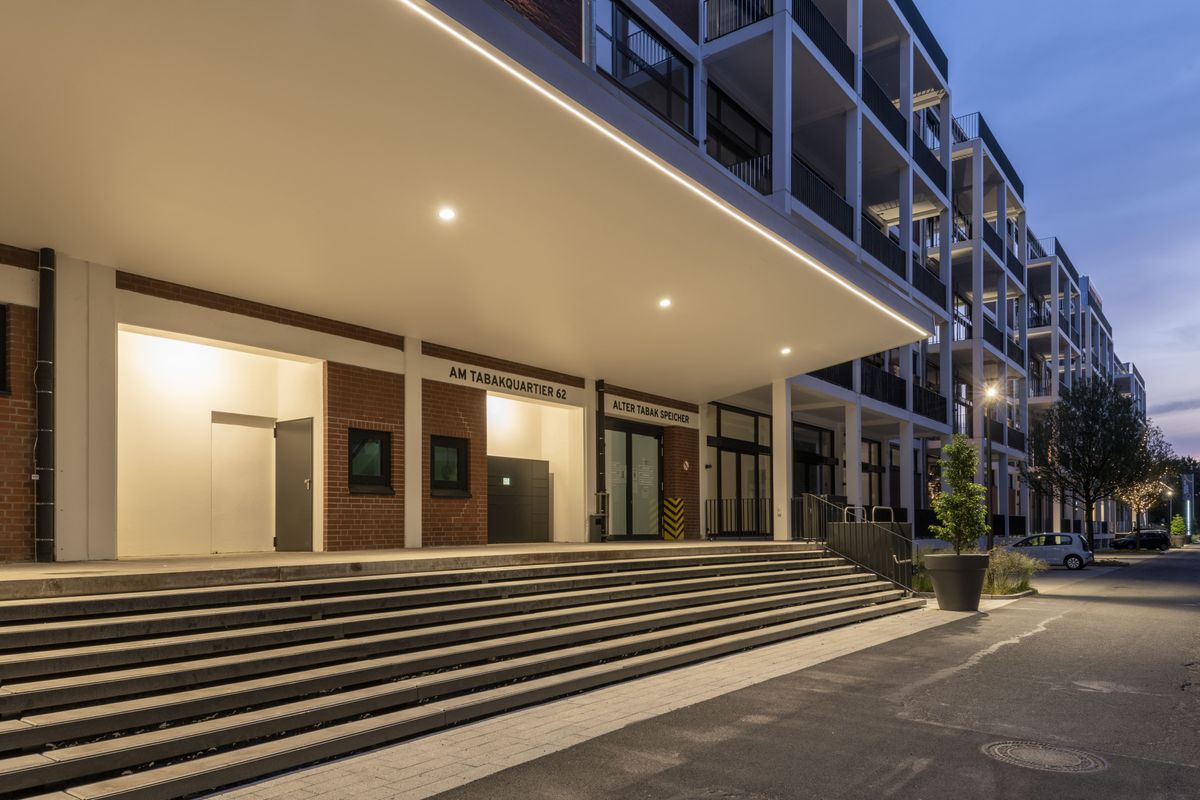 Aufgabe Ca. 3800 m² Verglasungsarbeiten an Stahlfassade. Ca. 500 m² vertikaler Al-PR-Fassadenstreifen inkl. Verglasung. Ca. 300 m² opak verglaste AL-PR-Kaltfassade.